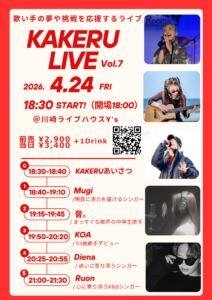 KAKERU LIVEは、すべての「歌いたい」気持ちを応援するライブイベントです。